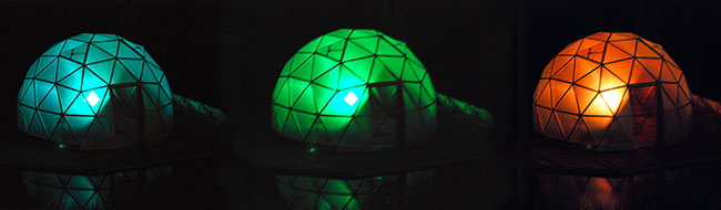 夜间,圆顶温室会变换成一个具有灯光效果的漂浮雕塑,由两个编程的LED灯每小时变换色彩。