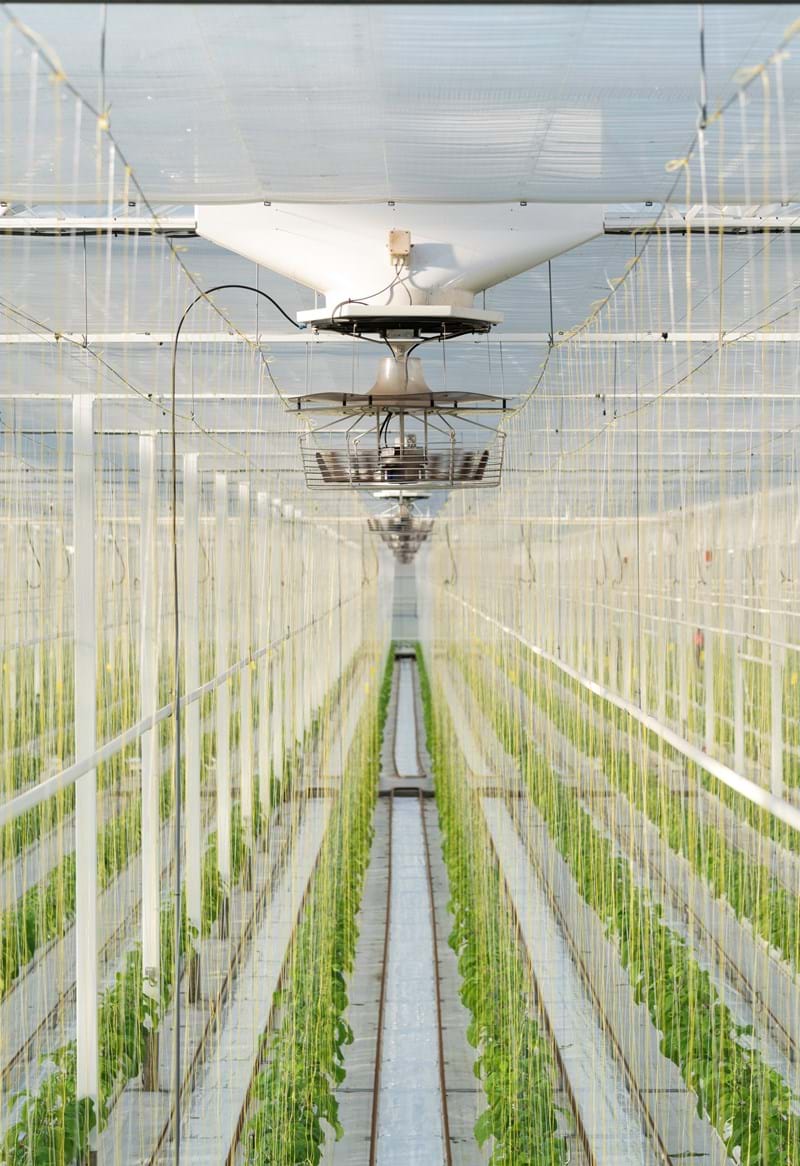 Im Jahr 2017 begann er sich zum ersten Mal eingehender mit dem ClimaFlow-System auseinander zu setzen, seinerzeit baute er noch ausschließlich Tomaten an. Das System bot ihm die Möglichkeit, die Feuchte in seinen Gewächshäusern besser regulieren zu können, was im Umkehrschluss dann dabei hilft, Pilzbefall bei Tomaten zu verhindern. Auch konnten dank des ClimaFlow-Systems die Klimaschirme länger geschlossen bleiben, was sich letztendlich als perfekte Kombination mit der diffusen Glaseindeckung erwies. „Seit wir das ClimaFlow-System installiert haben, können wir deutliche Verbesserungen feststellen“, erklärt Paul van den Broek fast schon enthusiastisch. „Das Gewächshausklima ist viel ausgeglichener geworden. Die Temperatur in Nähe des Mittelgangs ist ziemlich gleich mit der in den Giebeln des Gewächshauses. Wir haben deutlich weniger Probleme mit Feuchtigkeit und Pilzbefall. Und weil wir die Schirme länger geschlossen halten können, sparen wir ordentlich Energie.“