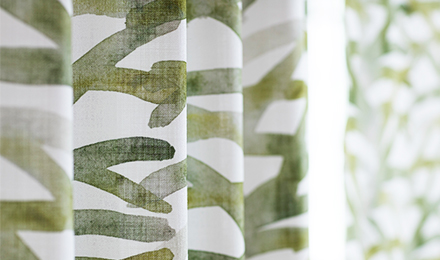 Mit seinen ausdrucksstarken und weichen Mustern ist Sawa ein vielseitiger Vorhangsstoff, der sich leicht mit einfarbigen Basisstoffen kombinieren lässt.