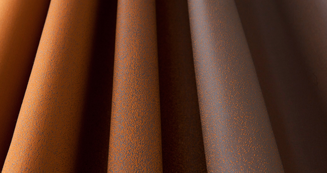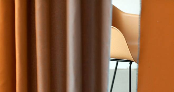 Ombré ist in sechs Farbtönen erhältlich, deren Palette von Hell bis Dunkel und von Warm bis Kalt reicht. Der Stoff ist aus schwer entflammbarem und pflegeleichtem Trevira CS gefertigt.