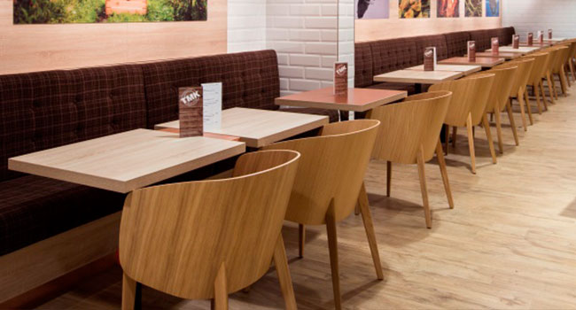 Das Restaurant mit unserem Sonnenschutz Amara und den Sesseln eingekleidet in Bit.