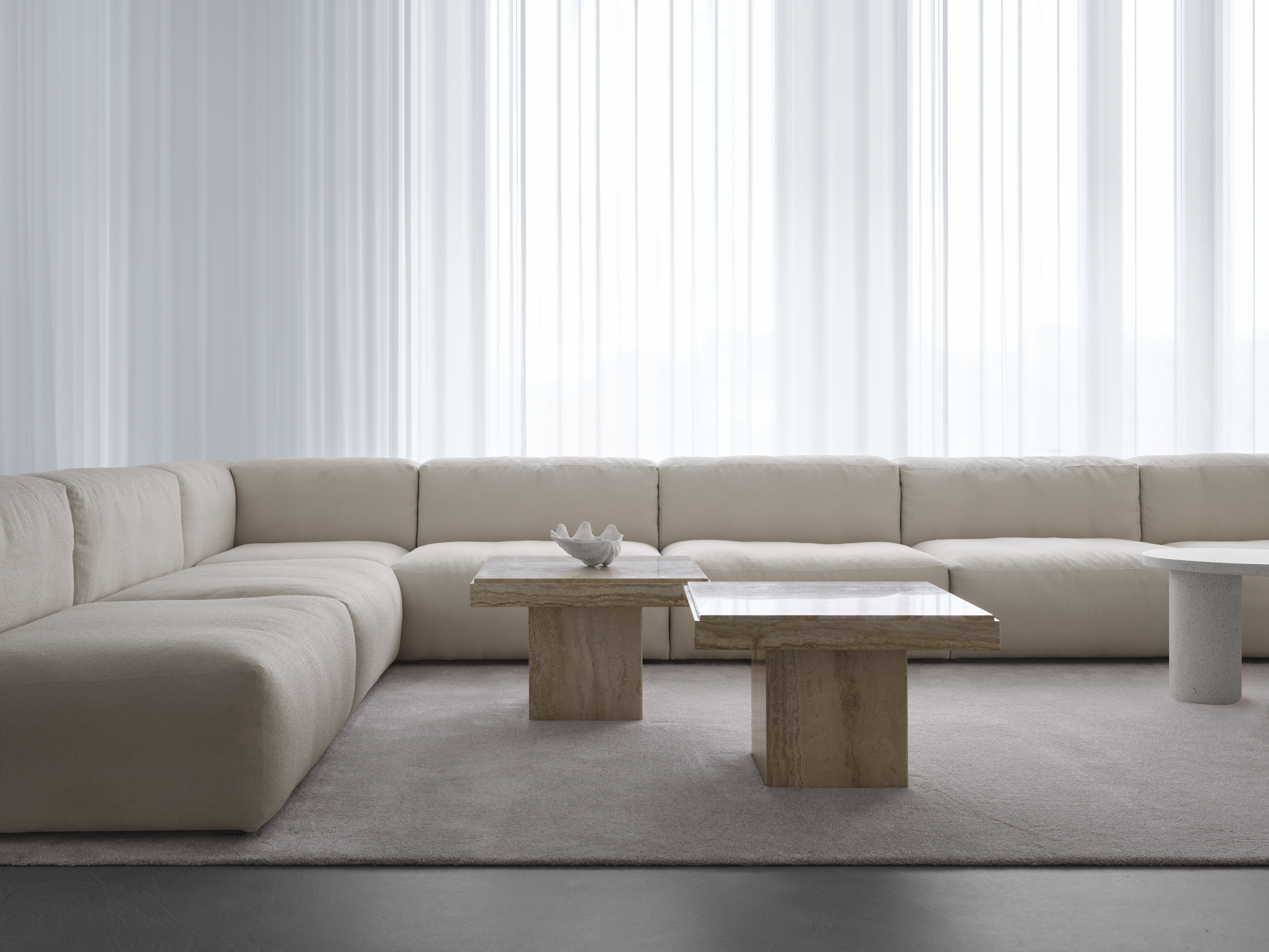 Die umlaufenden Vorhänge sorgen maßgeblich für visuelle Trennungen sowie eine Verbesserung der Akustik.