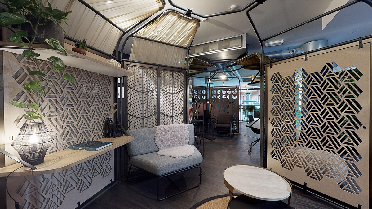 Zusammen mit dem Vorhangstoff Mint, die freistehende Struktur Colony gibt Ihnen die Freiheit, Ihr perfektes Layout zu konfigurieren.