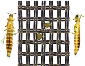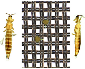 The below images are taken through a microscope and show the different netting types and thrips to compare their geometry. Here, images to scale are presented and can be seen in an electron microscope. This clearly presents the thrip's unique size and mesh structure, showing why effective exclusion is so precise.