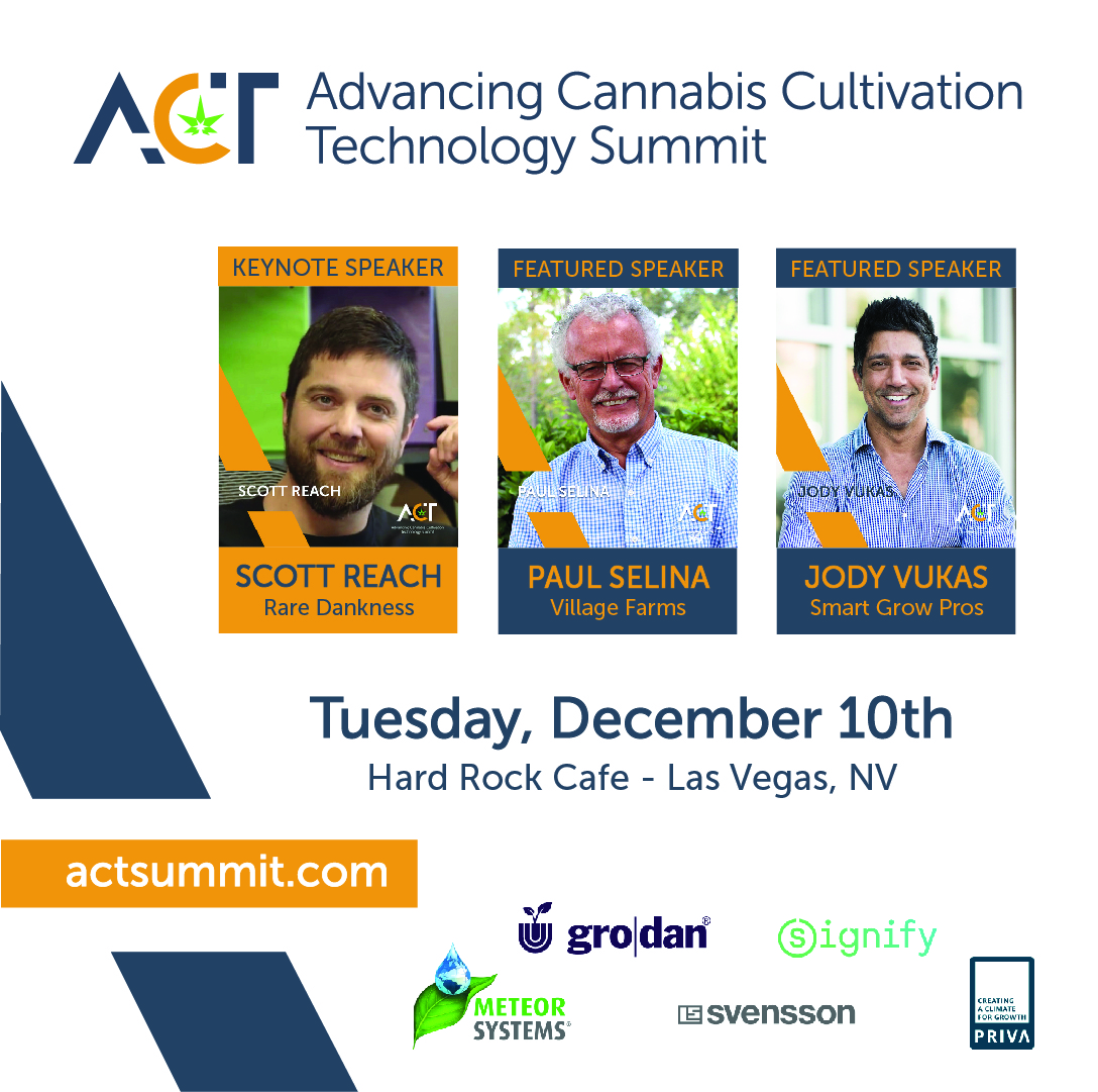 Svensson partners with industry suppliers with deep rooted horticultural histories to host a unique educational summit prior to the MJBizCon show in Las Vegas this December. On Tuesday, December 10th, the Advancing Cannabis Cultivation Technology Summit (ACT Summit) will bring together cannabis cultivators, owners, and investors for a full day of education on the latest cutting-edge technologies and best practices designed to improve operational efficiency and increase overall profitability in today’s competitive cannabis cultivation landscape.