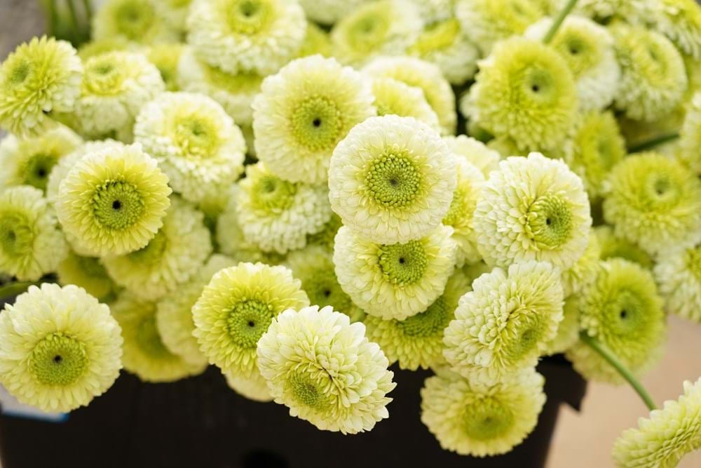 “There are many advanced devices to help with the climate for gerbera flowers, including outside and inside screens from Svensson, and climate control and irrigation from Priva. In total, 100,000 pots are grown in the 2Ha greenhouse and 28 gerbera cultivars come from Dutch breeding company, Schreurs. The colors and appearances are unique and attractive.” Director of the management committee Mr. Cao explained.