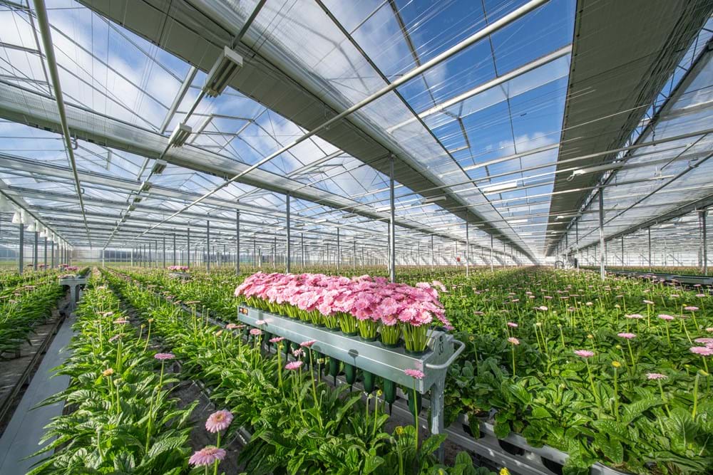 Gerbera nursery EveryD Flowers recently expanded from 12 to nearly 16 hectares. An existing rose greenhouse on Oostlaan in De Lier was completely converted into a gerbera greenhouse. Two Svensson climate screens were installed in the new greenhouse: an Obscura 10070 FR WB+BW blackout screen and the transparent energy screen Luxous Light FR. The installation was carried out by El Flaco Scherminstallaties, with whom EveryD Flowers has been collaborating for some time.