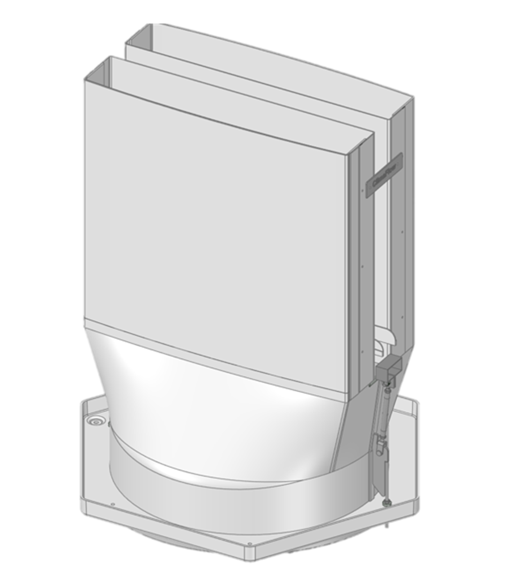 The ClimaFlow System exists out of two parts. The white, top part is called the VentilationJet and below the Ventilationjet you find the ClimaFlow Fan. The VentilationJet draws the air from above the screen and distributes this below the screen. By having the vents open, the air characteristics, and especially the absolute humidity levels are different above the screen compared to the air characteristics below the screen.