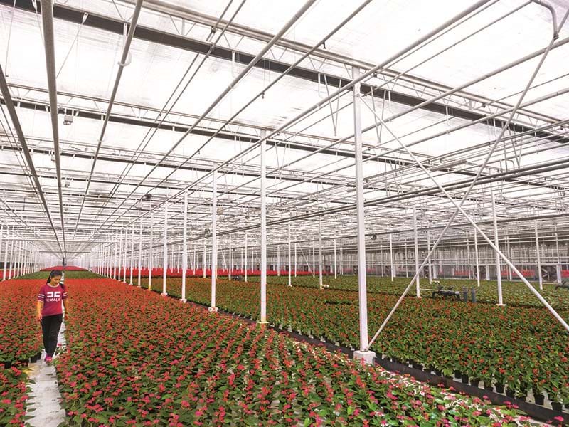 There are greenhouses that only need one or two watering cans. And then there are facilities such as the Tianjin Binhai International Flower Science & Technology Park, located just outside of Beijing, which has a goal of reaching a million square meters of greenhouse space.