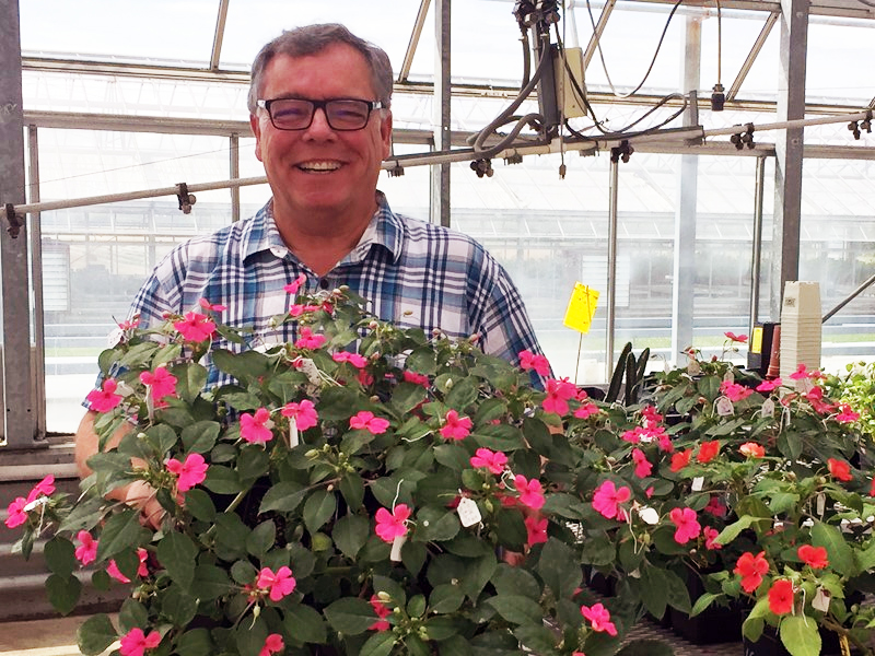 Dr. Mark Bridgen leads research efforts at LIHREC to breed an impatiens hybrid that is resistant to IDM. “We have successfully confirmed that other impatiens species compatible with I. walleriana were also resistant to IDM and useful for breeding,” Dr. Bridgen said. “Cornell University now has 2 lines of impatiens hybrids that are resistant to IDM. The next step is to continue this breeding program and develop seed-propagated lines of the resistant hybrids. By doing this, we will be able to fill the garden niche that has been held by Impatiens and provide more options for growers.”