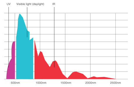 Table: showing the wavelength distribution of sunlight - 320nm-2500nm