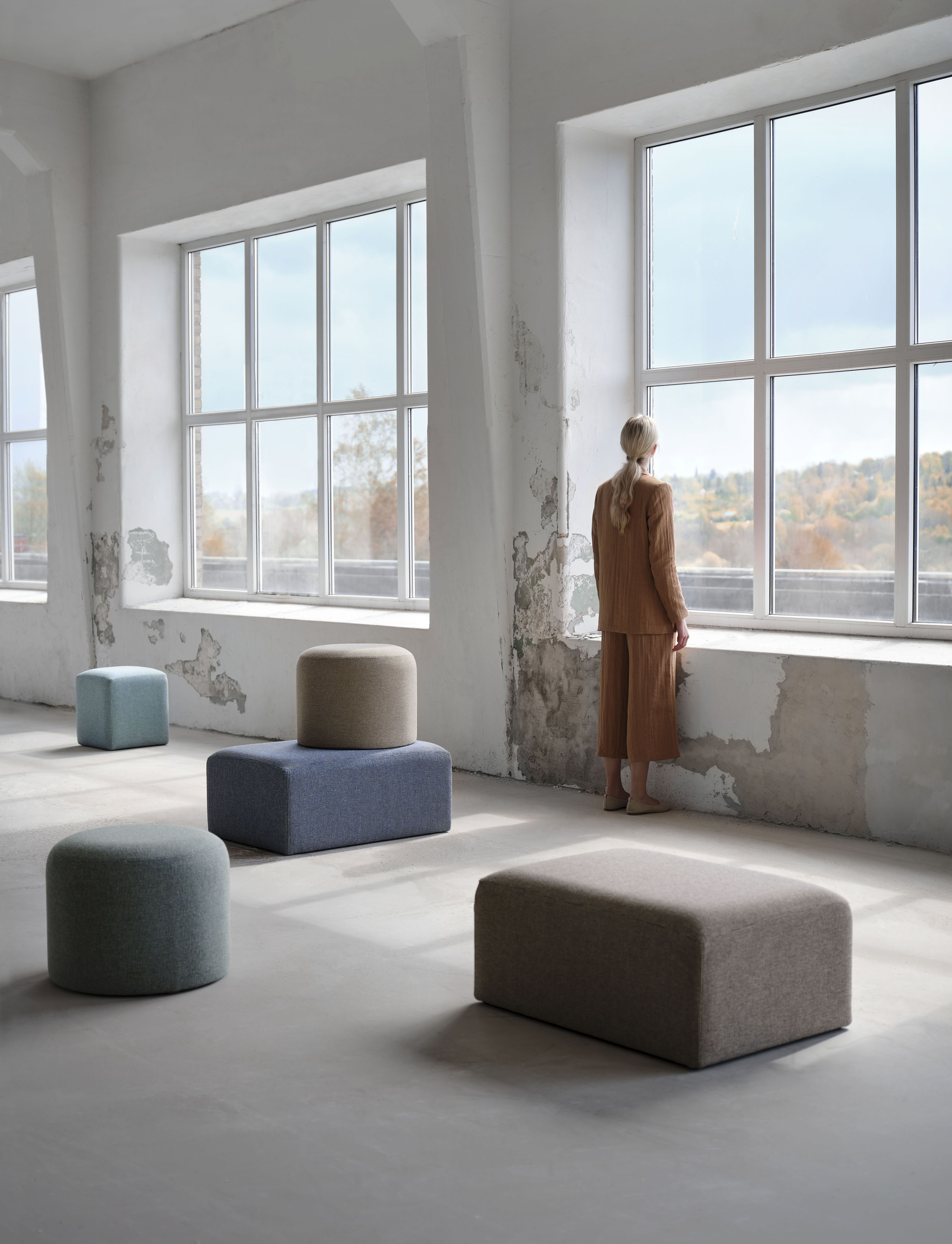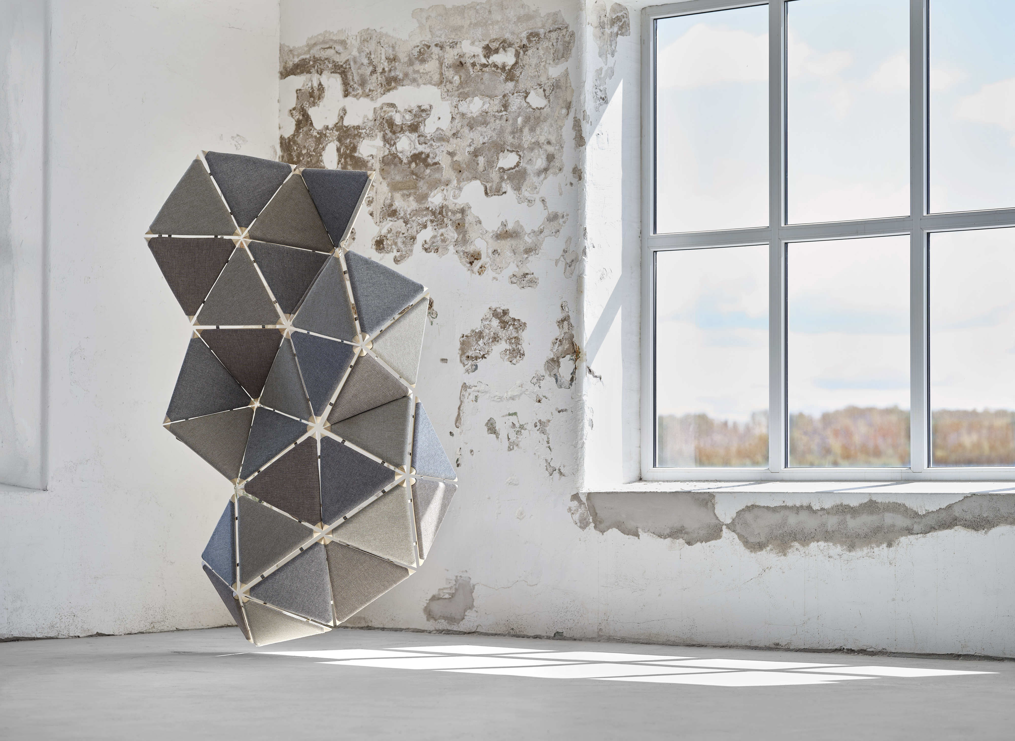 Specializing in textiles, Larsson continued her studies in the design programme at HDK. She has used this platform to expand her interest in three-dimensional shapes, with materials, forms, and colours taking centre stage in her works, always with sustainability and the environment as her starting point. During her second year of study, she got back in touch with Svensson, asking for a study visit to the factory in Kinna. The meeting heralded the start of a new assignment - to produce a display for Svensson's new upholstery fabric, Debut.