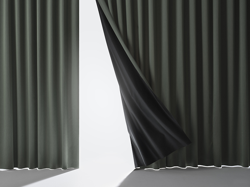 Twin is a monochrome dimout with minimal light transmission and a really good sound transmission class. A densely woven curtain with an impressive drop and a beautiful drape that works just as well in front of the window or to create extra spaces within the room.