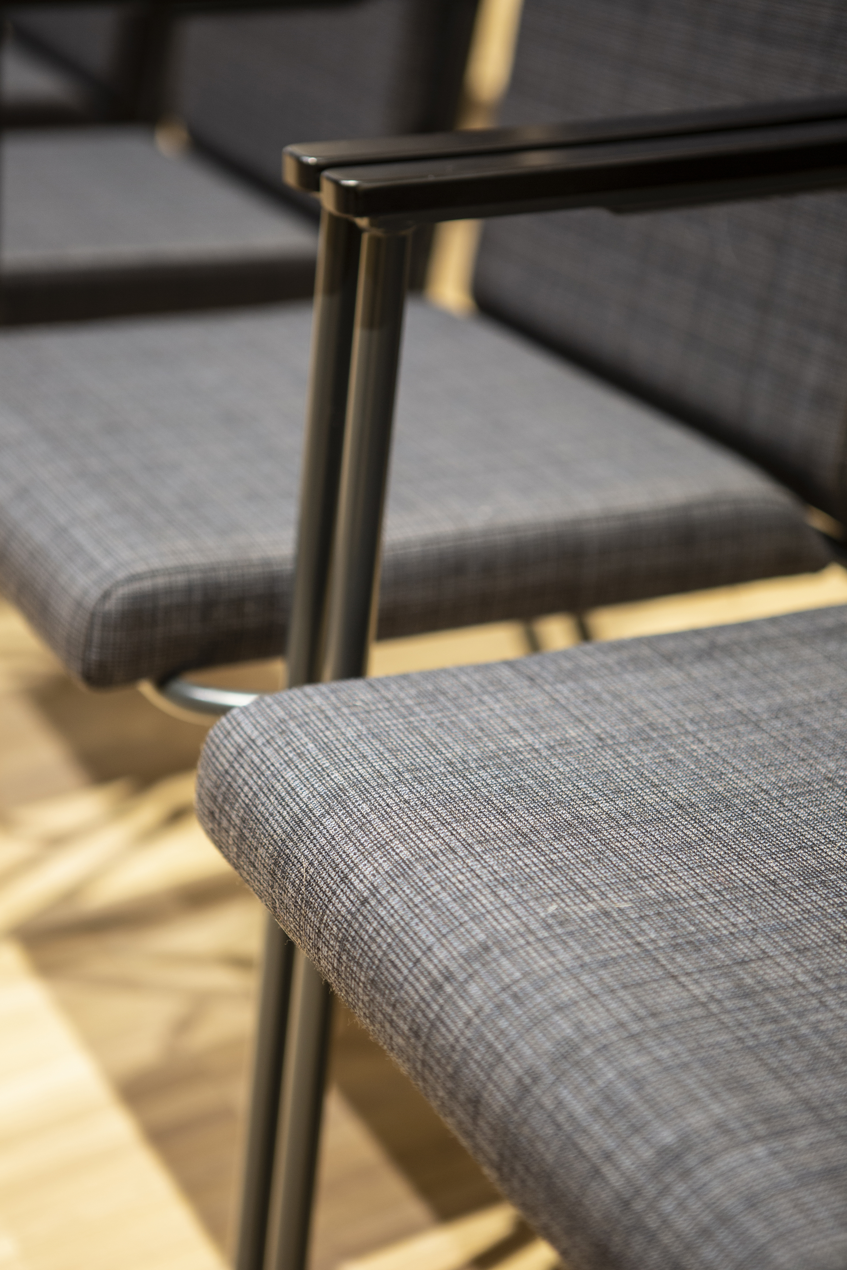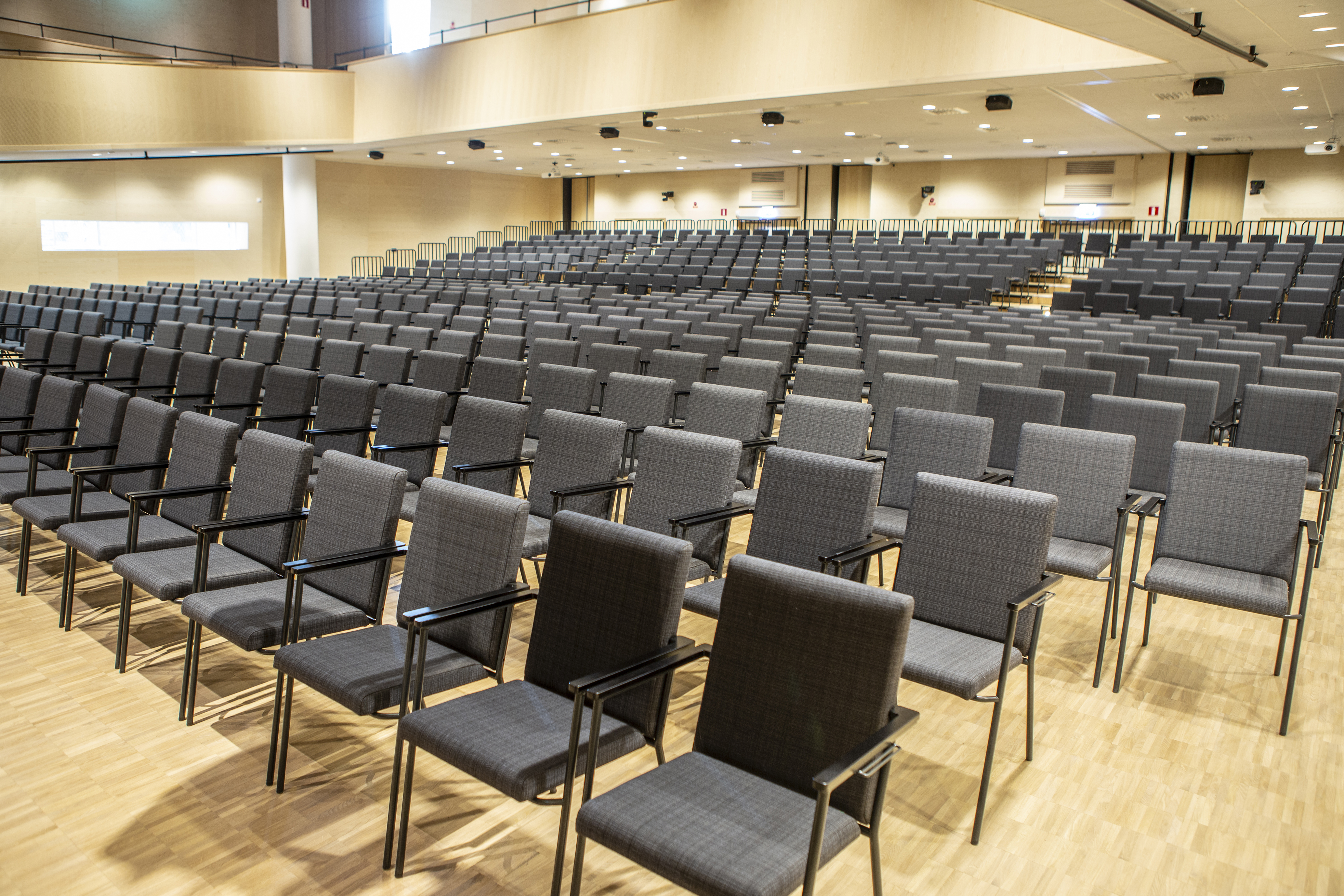 Over 500 chairs dressed in Svensson fabric Ink in the remodeled congress hall in Borås, Sweden.