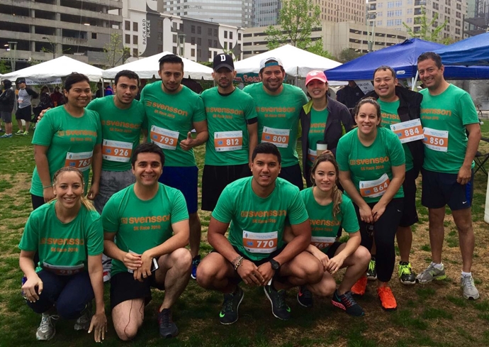 El Equipo Svensson, compuesto por catorce empleados y familiares de la oficina de la compañía en Charlotte, Carolina del Norte, se unió como equipo para correr juntos y apoyar la causa nacional contra los tumores cerebrales.