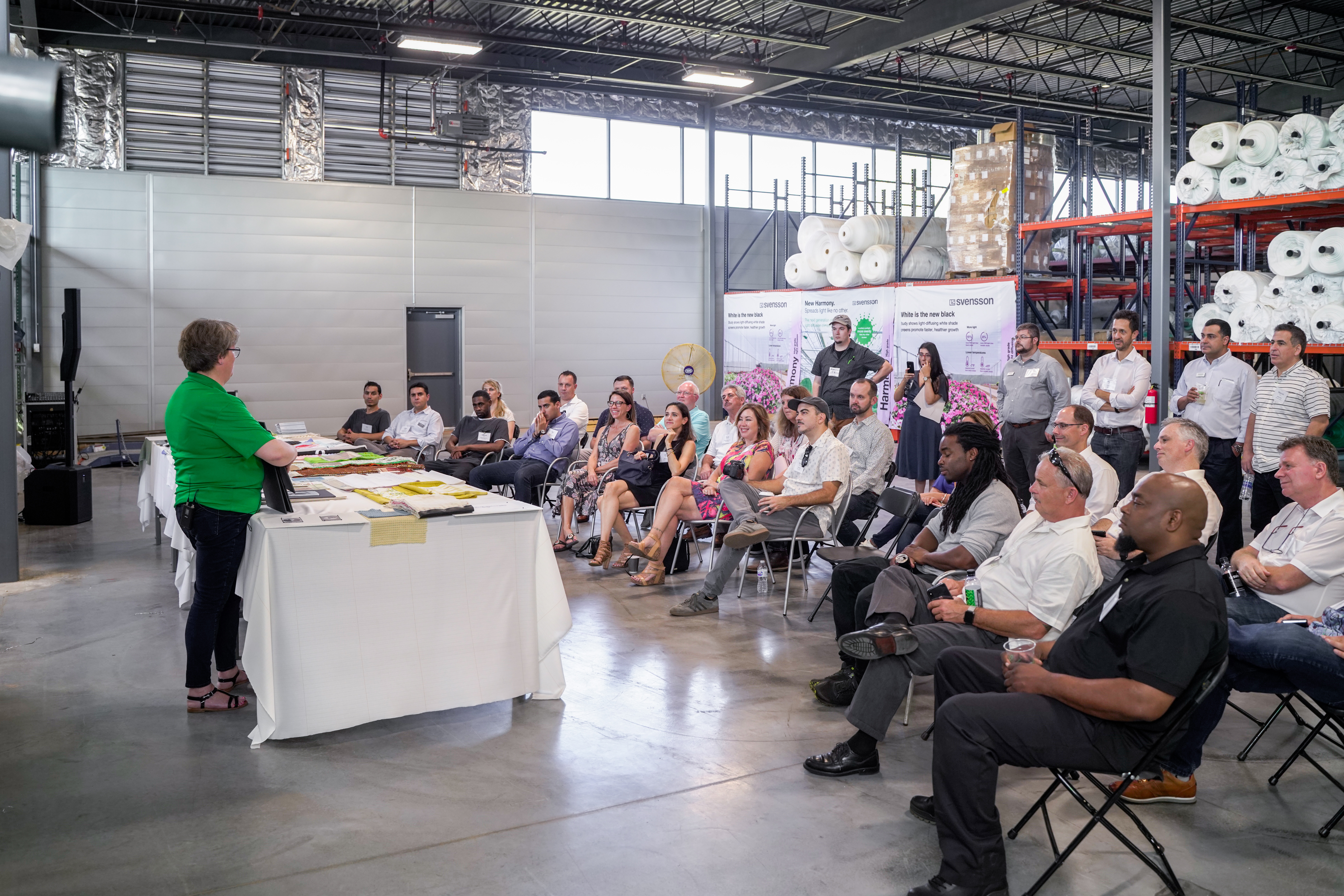 El evento destacó el pasado de las compañías, que se remonta a más de un siglo con sus tradiciones textiles de larga historia que comenzaron en Kinna, Suecia, en 1887. Los invitados recibieron con un vistazo el interior de la amplia instalación de producción y almacenamiento, lo que eleva significativamente la oferta de servicios de Svensson, brindando a productores y clientes las pantallas que necesitan y cuando las necesitan. Como verdadero pionero, el evento incluyó una mirada al futuro y el esfuerzo de Svensson por mantenerse a la vanguardia, continuando como un líder en pantallas climáticas.