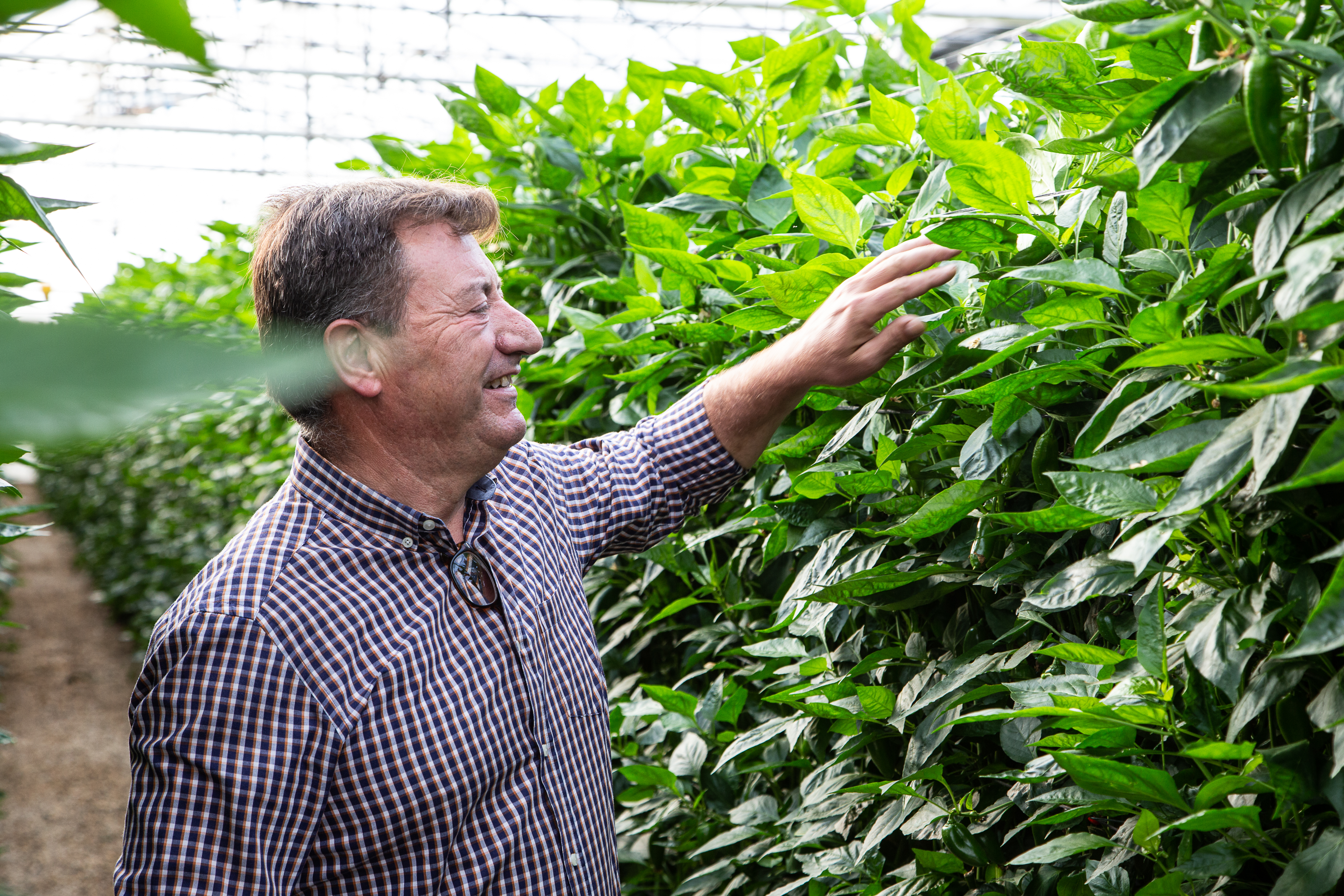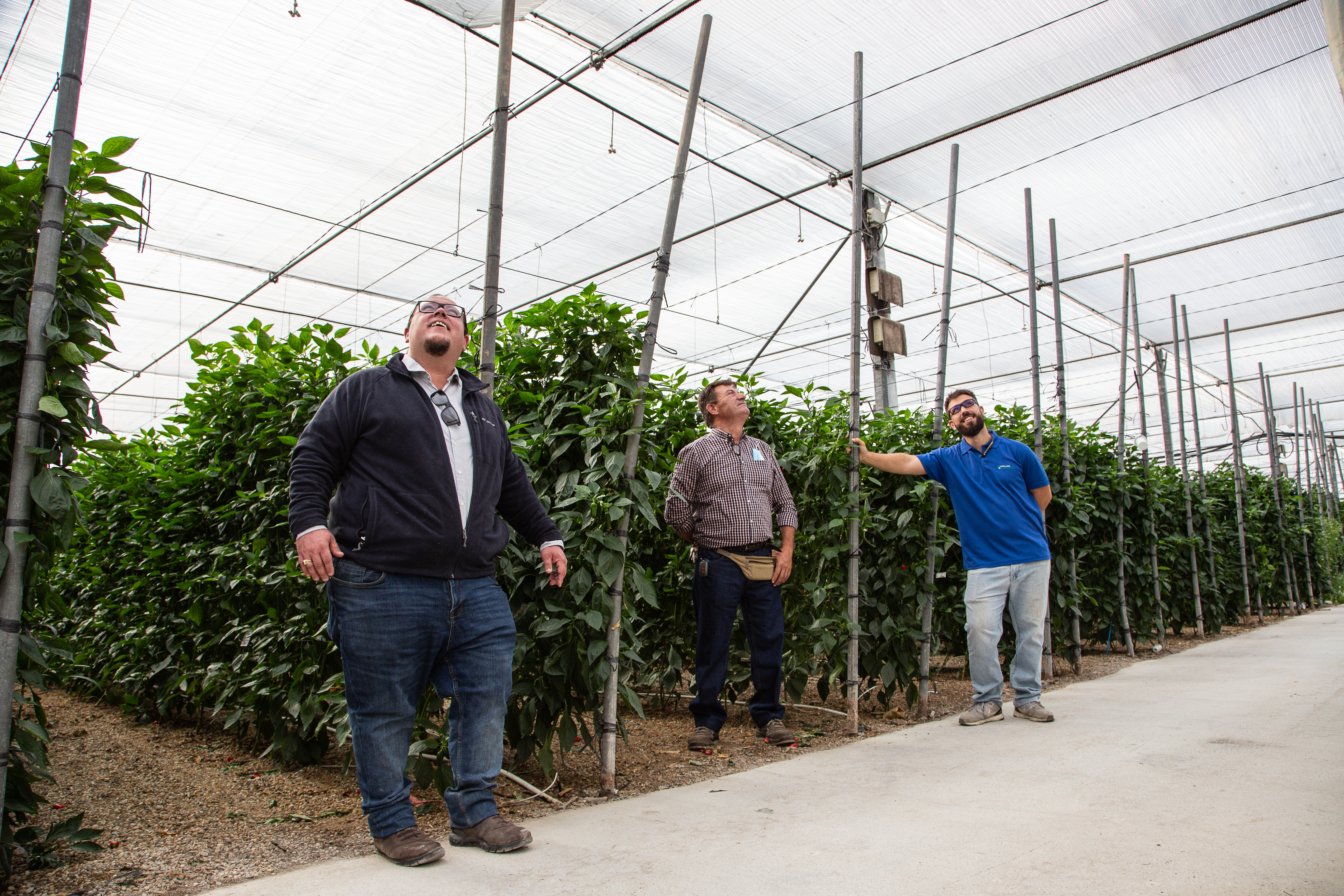 Caminamos juntos hacia uno de sus invernaderos donde la producción principal es de pimiento. José Baños nos empieza a contar su historia como pionero en el uso de las pantallas Svensson, tecnología cada vez más extendida en la provincia de Almería.