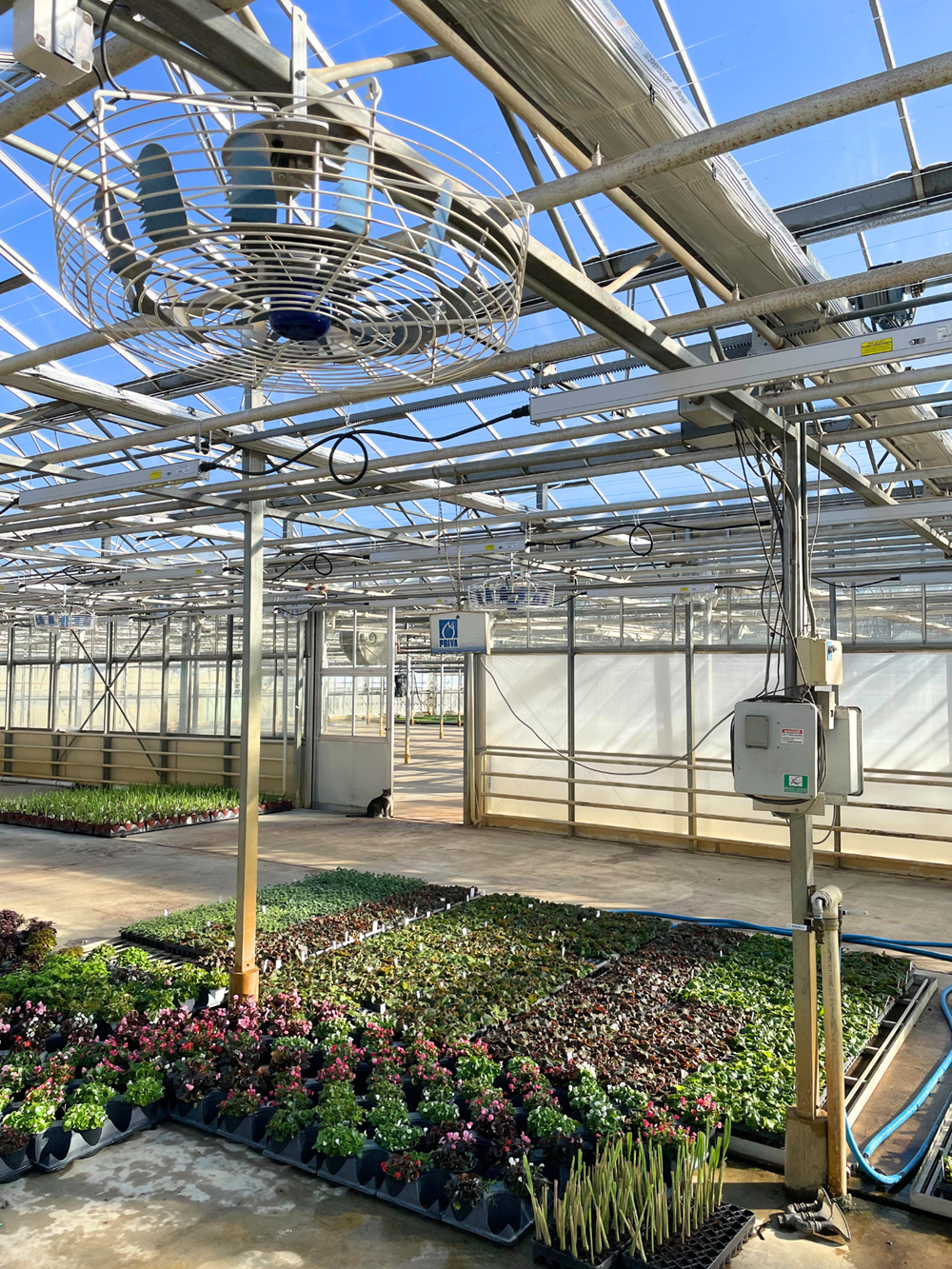 "우리 온실의 구조물은 상당히 낮고 팬이 식물에 가까워지기 때문에 유닛 수를 늘리고 대신 저속으로 가동하여 번식할 때 트레이쪽에는 바람이 필요하지 않다는 것입니다."