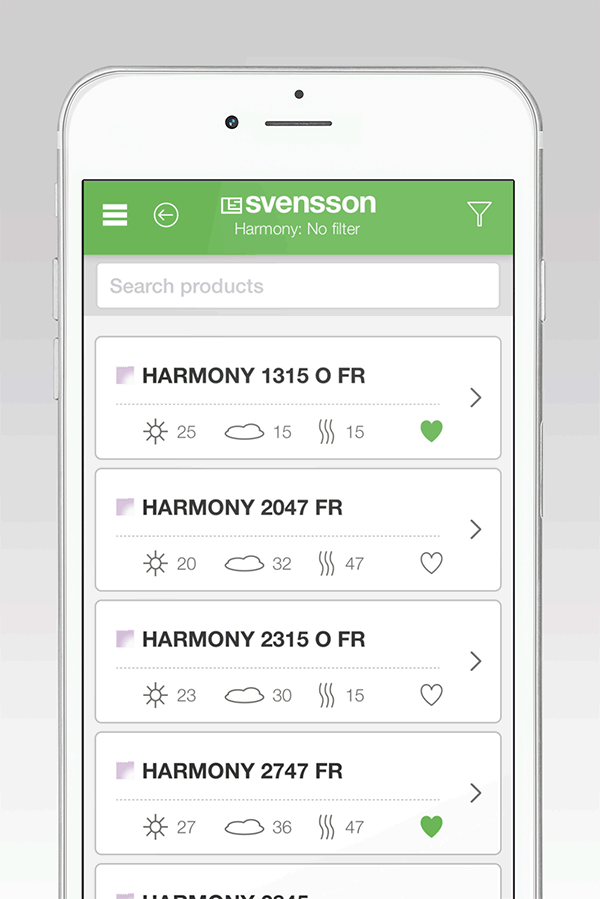 De nieuwe Svensson Product App maakt het makkelijk om het juiste klimaatscherm te vinden