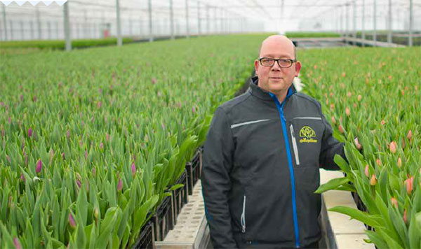 "In de kas kunnen we het klimaat regelen en de bloemen voorbereiden op vervoer - een reis die dagen en soms zelfs weken kan duren. De klant merkt hier echter niets van, want onze tulpen komen altijd vers op hun bestemming aan. In vier maanden tijd leveren wij tientallen miljoenen tulpen aan klanten over de hele wereld. Om dit te kunnen doen moeten we alles tot in de kleinste details plannen."