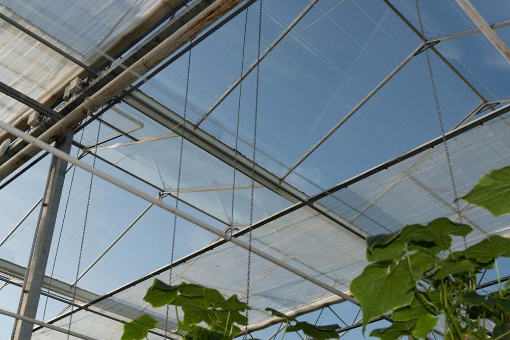 De meerwaarde van het Luxous 1147 FR scherm is volgens Verlinden, die werkt met drie teelten per jaar, het grootst in de eerste maanden van het jaar. “Wij planten altijd in de eerste week van januari. In de wintermaanden schermen we veel: zodra de buitentemperatuur onder de acht graden komt, gaat het scherm dicht. Doordat ons huidige scherm zo helder is, krijgt de plant dus meer licht in de eerste weken van de teelt. Daarin schuilt een grote winst: de planten zijn sterker, wat resulteert in een hogere productie. Deze is te vergelijken of zelfs nog beter dan bij moderne glasopstanden. Sinds ik Luxous 1147 FR heb hangen, loopt de teelt veel soepeler.” De hoge lichtdoorlatendheid stelt de komkommerteler ook in staat om meer te schermen gedurende de wintermaanden: het scherm gaat ’s ochtends later open en Verlinden trekt het ’s avonds eerder dicht. “Door deze extra schermuren hoeven we minder buisverwarming in te zetten en bespaar ik meer energie in de koudere maanden.”