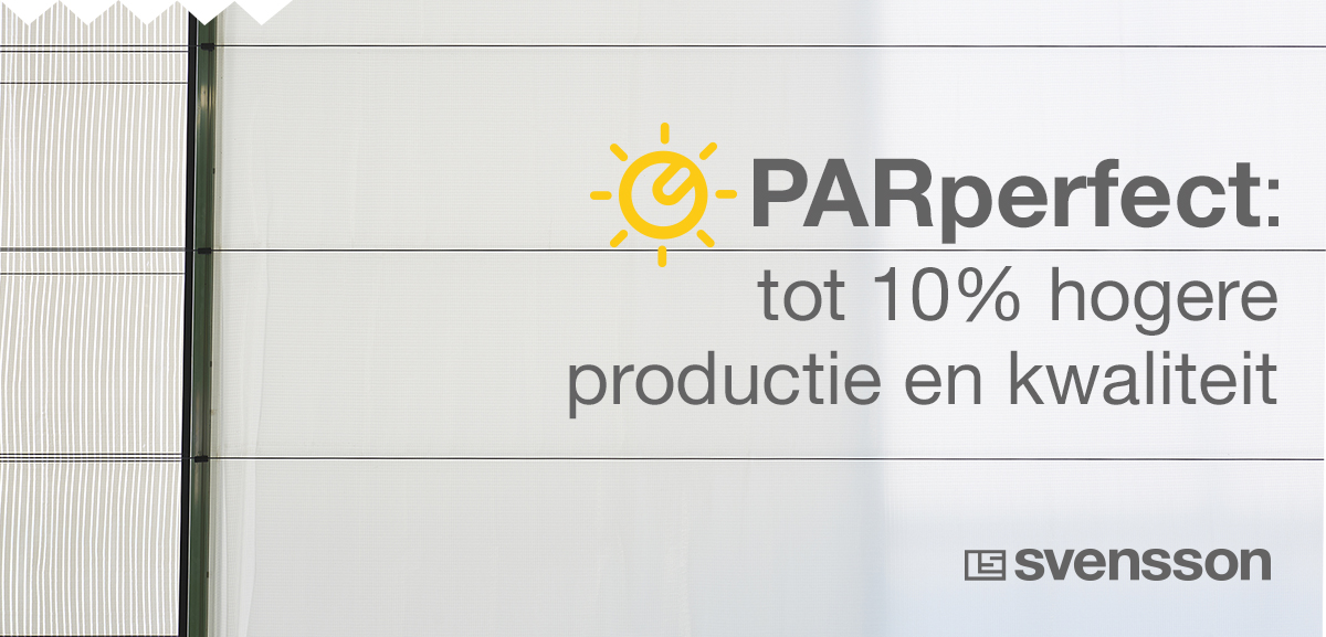 Svensson lanceert een nieuwe, innovatieve schermoplossing: PARperfect. De schermoplossing die zorgt voor een perfect egale lichtverdeling en een constant PAR-lichtniveau in de kas, ongeacht de buitenomstandigheden.