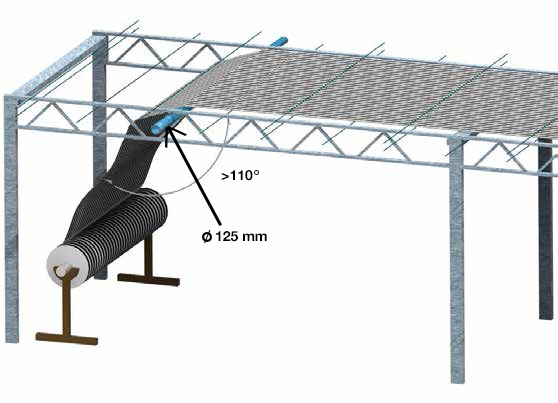 При раскатывании экрана убедитесь, что угол составляет больше 110°, а экран прокатывается через гладкую пластиковую трубу диаметром 125 мм и более.