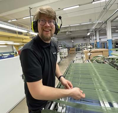 Petter Grubbström började på Svensson 2017 i virkeriavdelningen och flyttade 2020 över till vävning. Nyligen har han tagit på sig den mer seniora rollen som vävlagare och ersättare för arbetsledaren.