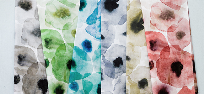 Sumire är som en vacker akvarellmålning utan början och slut. Färgerna flyter in i varandra och tillsammans skapar de ett blommönster som är både skirt och modernt.
