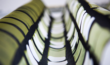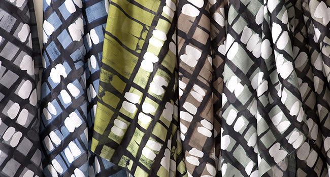 Med expressiva penseldrag skapas en härlig dynamik. Svenssons nya gardin Aki är tryckt på ett transparent material med en skir känsla och har ett uttrycksfullt mönster som ger karaktär.