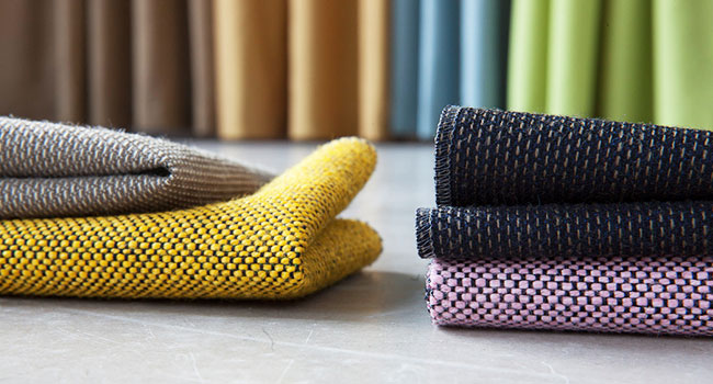 Grönt mot gult och orange. Blått mot beige och grönt. Med ett tyg vävt av garn i tre färger får Era en oväntad karaktär.