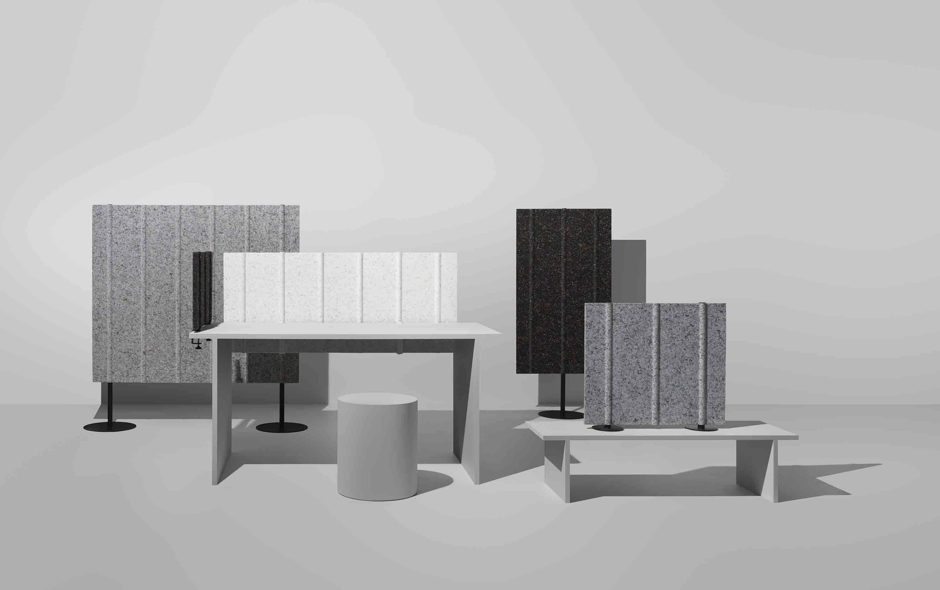 Produkten som BAUX utvecklat är en akustisk filtskärm för kontorsmiljö, BAUX Acoustic Felt. Skärmarna består av 100 % polyesterbaserad textil från vår fabrik, färgad i en sluten process. Fibrerna sorteras i tre olika paletter som alla får en egen identitet genom den naturliga variationen av färg och ursprung. Genom att sedan producera ett standardiserat ark garanteras minimalt med rester. Arket i sin tur delas därefter i mindre bitar för att möta alla olika typer av design-, funktions- och inredningsbehov.
