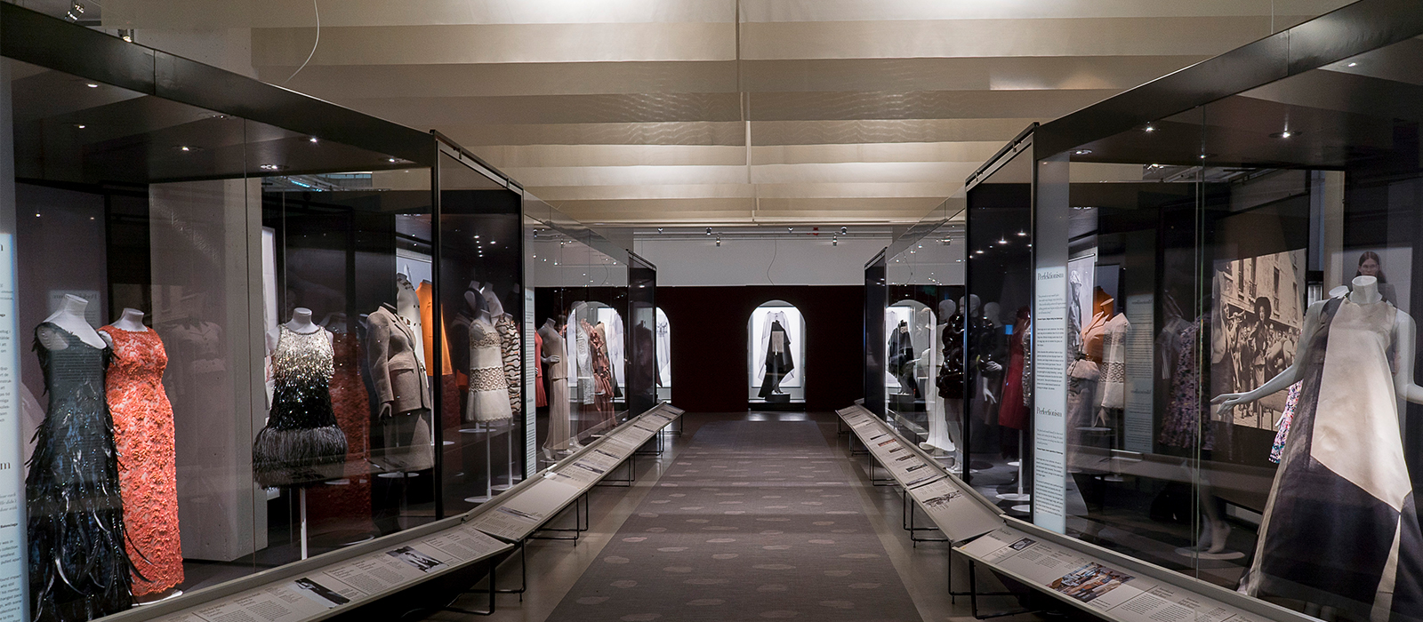 Den internationella utställningen Balenciaga - Master of Couture är gjord av det berömda Victoria and Albert Museum i London. Utställningens montrar är klädda med gardinertyger ifrån Svensson och i taket.